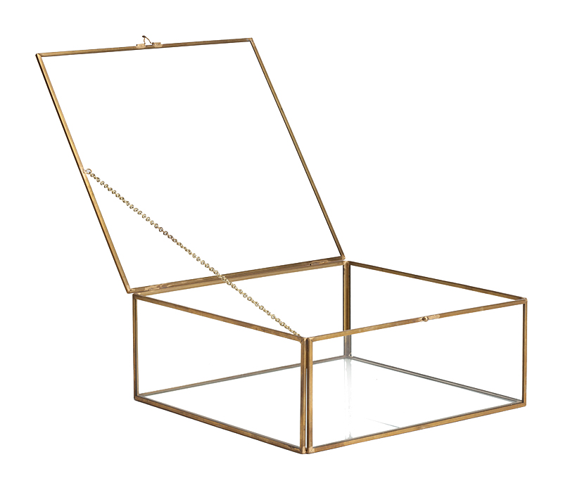 Декоративный бокс Belle — само изящество и элегантность. Так и хочется побыстрее убрать из помещения все громоздкое, лишнее, темных оттенков, а на самом видном месте установить бокс, выполненный из одного из самых красивых, прозрачно-чистых материалов — стекла. Основной функцией такого стеклянного ящичка с отполированными до блеска латунными «ребрами» каркаса является декоративность. Но его прелесть в том, что сам, являясь украшением, он может хранить, не скрывая от взгляда, другие прекрасные вещицы. В воздушно-прозрачном боксе будут превосходно храниться и смотреться красивые предметы для рукоделия: камушки, бисер. В него можно поместить фотографии, памятные грамоты, дипломы. Любители романтичных инсталляций с удовольствием устроят в прозрачном боксе цветные камушки, привезенные из экзотических краев, прелестные морские ракушки, старинные или ныне модные бусы. Бокс Belle гармонично впишется в стиль хай-тек, модерн и современный.