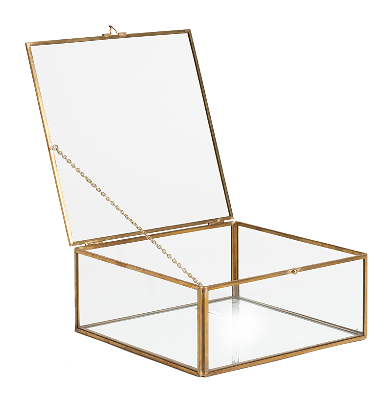 Вещи из стекла невесомы, всегда изящны и, обладая своим характером, свободно вписываются в интерьер. Декоративный бокс Belle с каркасом из латуни просто очаровывает с первого взгляда своей простотой и воздушностью. Стекло и металл, как природные, естественные материалы уместны в простых интерьерах, выполненных в стиле минимализма или хай-тек. И бокс Belle, изготовленный из них, смотрится в современном помещении элегантно, мило, без претензий на роскошь и шик, но очень привлекательно. Изделие может прекрасно служить для хранения милых и красивых безделушек или бижутерии, и быть украшением обстановки. Бокс Belle небольшого размера, поэтому он может составить отличную компанию вещицам из коллекции, к которой относится сам. Но, несмотря на скромные габариты, он достаточно функционален и практичен. Изящный бокс из чистого стекла с окантовкой из загадочной, прекрасно отполированной латуни, может стать удачным центром стилистической композиции.